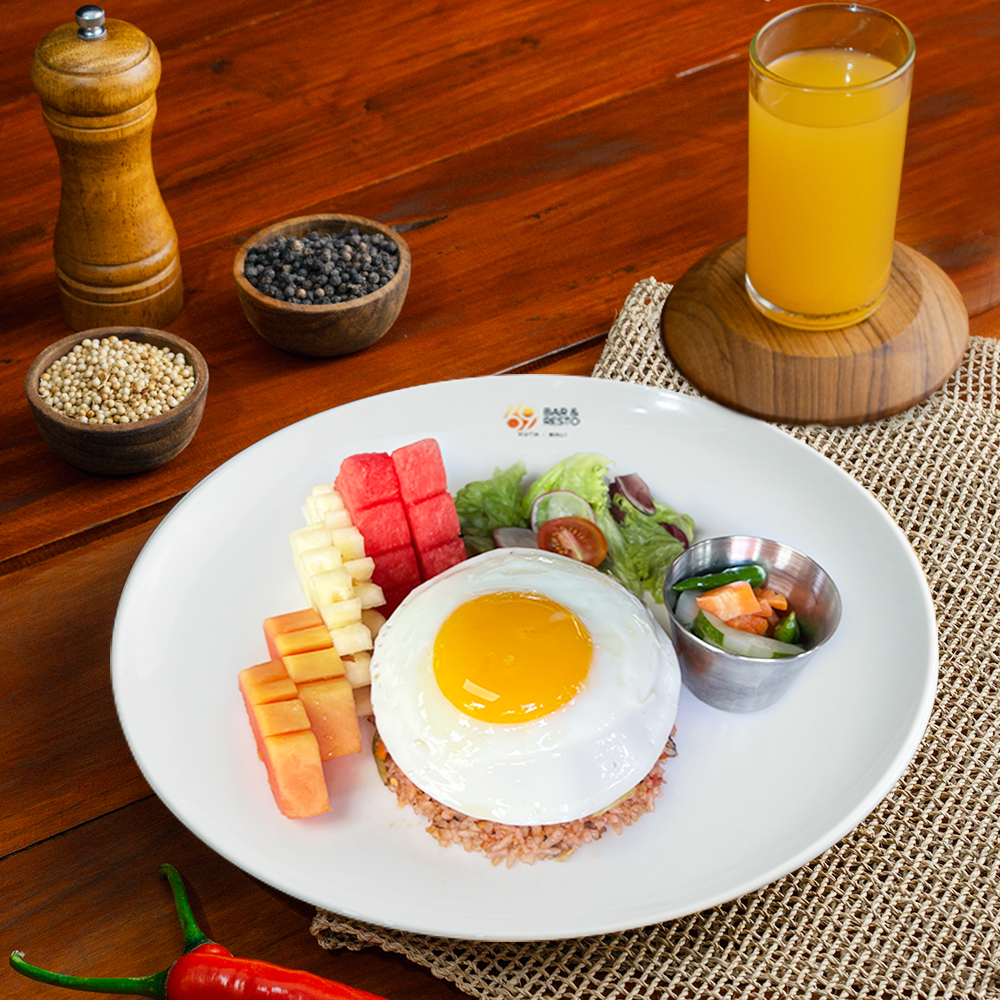 Nasi Goreng AbangThe Most Popular Indonesian street food fried rice served with chicken satay, fried chicken, fried egg and cracker.IDR125.000